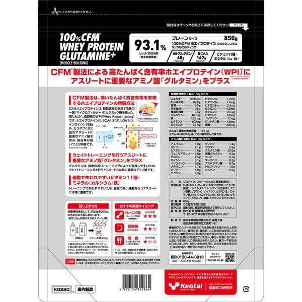 ケンタイ Kentai 100%CFM ホエイプロテイングルタミンプラス マッスルビルディング プレーンタイプ 850g たんぱく質 ボディケア K0220 ラフィートスポーツ