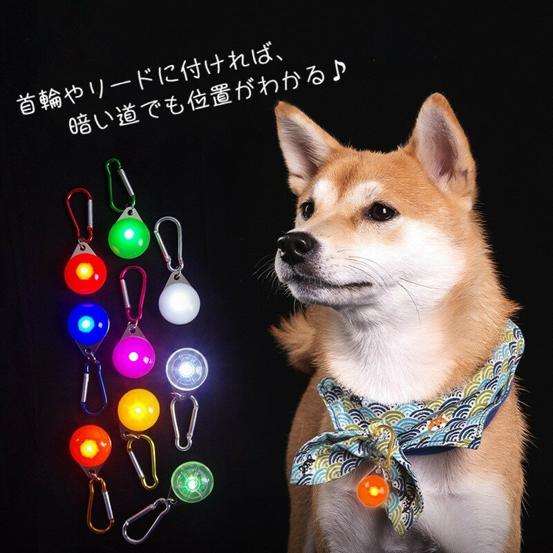 送料無料 首輪用チャーム お散歩ライト ペット用アクセサリー 犬用ライト イヌ 散歩グッズ ペットグッズ ペット用品 カラビナ キーホルダー型 丸型 ラウンド レッド ホワイト シンプル 使いやすい アウトドア レジャー