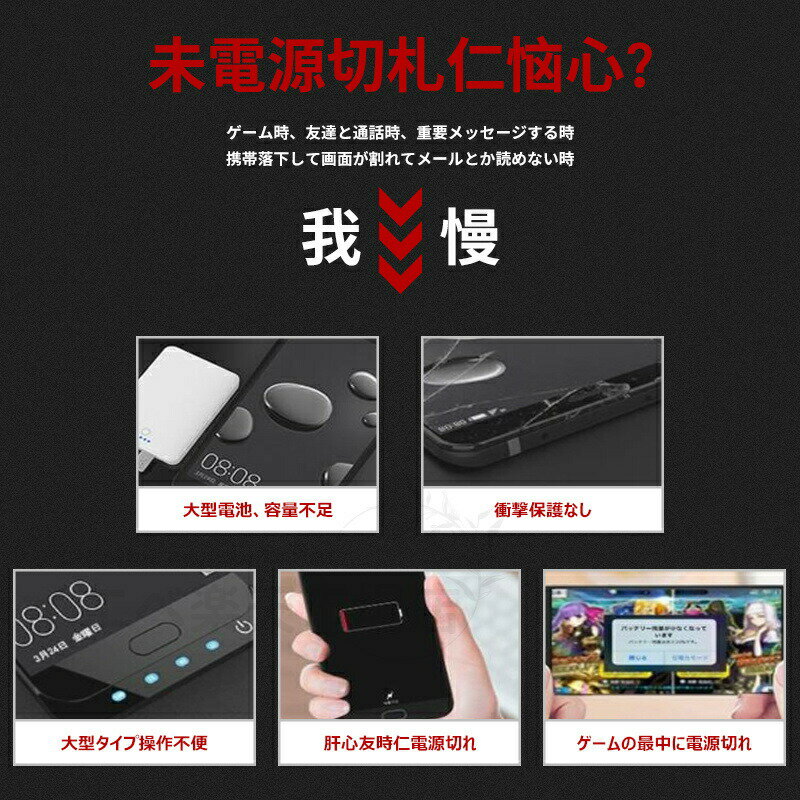 商品仕様 ・バッテリー:5000mAh 対応機種:iPhone 13mini ・バッテリー:8000mAh 対応機種:iPhone13、iPhone13Pro、iPhone13ProMax PSマークの種類 PSE 届出事業者名ZHL株式会社 特徴 【超薄型&超軽量&超便利】 ケースとバッテリーが一体型になっている充電ケースで、取り付けや取り外しが簡単です。普通のケースと同じように装着して使え、カメラのところで押せばスマホが出てきてから、そのまま携帯本体上にスライドさせれば簡単に外れます。同時に、地震や台風などの自然災害の不測の事態による停電のことを引き起こしで、携帯電話の充電不能を防ぐための非常用アイテムとして使用できます。 【ボタン1つで充電、残量確認】 電源ボタン1つを長押しだけで、バッテリー内蔵ケースからスマホへの充電開始、停止を操作でき、背面には4段階のLEDインジケーターが配置されており、バッテリー残量が一目で確認。充電器繋がって、充電する際に、優先バッテリーケースに充電、またスマホに充電。バッテリーケースの電量100%になったら、自動的にスマホ充電が始まります。 【多重保護機能】 バッテリー自体は、過充電保護、過放電保護、過剰電圧防止、過電流保護、パワー過剰防止などの防護機能を搭載しております。過充電/発熱時などの場合は、自動充電停止になり、長期間安心してお使いいただけます。 【高品質シリコン】 外側のシリコン素材はさらりとした優しい触り心地。 従来のプラスチック製品と比較してゴムに近い素材なので滑りにくく、誤って手から落ちる危険が少なくなりました。 ◎泡タイプ、スプレータイプ、ジェルタイプ三種類から選べます。 お勧めポイント ・iPhoneを充電できるバッテリー内蔵ケース ・大容量バッテリーを内蔵しながら極限まで薄く、軽く設計 ・いつでもどこでもすぐ充電できて飛行機の機内持ち込みも可能 ・モバイルバッテリーはもういらない スマホケースを装着するだけで充電開始 ・バッテリー残量を表示 バッテリー残量が一目でわかるLEDライト搭載 ・使い方は簡単 電源ボタンを長押しするだけ ・着脱しやすいシンプルなデザイン ケース上部からスライドするように着脱を行なってください ご注意 iPhoneの飛び出たカメラを保護するため、 ケースがレンズよりも高くなるように設計されています。 また、スピーカーやイヤホンジャックなどの部分はは塞がないように 精確に穴があけられており、ケースを装着したままで使用に影響を及ぼしません。 さらに各ボタンは手探りでも位置がわかるよう、凸形状にデザインされています。 ※ 日本製 ではありません。 キーワード 大容量 急速充電 type-c 5000mAh より増量 5台同時充電可 タイプc対応 スマホ充電器 バッテリー 高品質 便利 軽量 台風 地震 災害 旅行 出張 停電対策 iPhone/Android対応 ケーブル内蔵 シンプル iPhoneXS Max iPhoneXR iPhoneX iPhone8 GALAXYS8 Xperia XZs 防災 急速充電 2.1A スマートフォン 充電器 スマホ充電器 便利グッズ アウトドア活動 ポイント 防災 津波 地震 ネオン メーカー希望小売価格はメーカーサイトに基づいて掲載しています