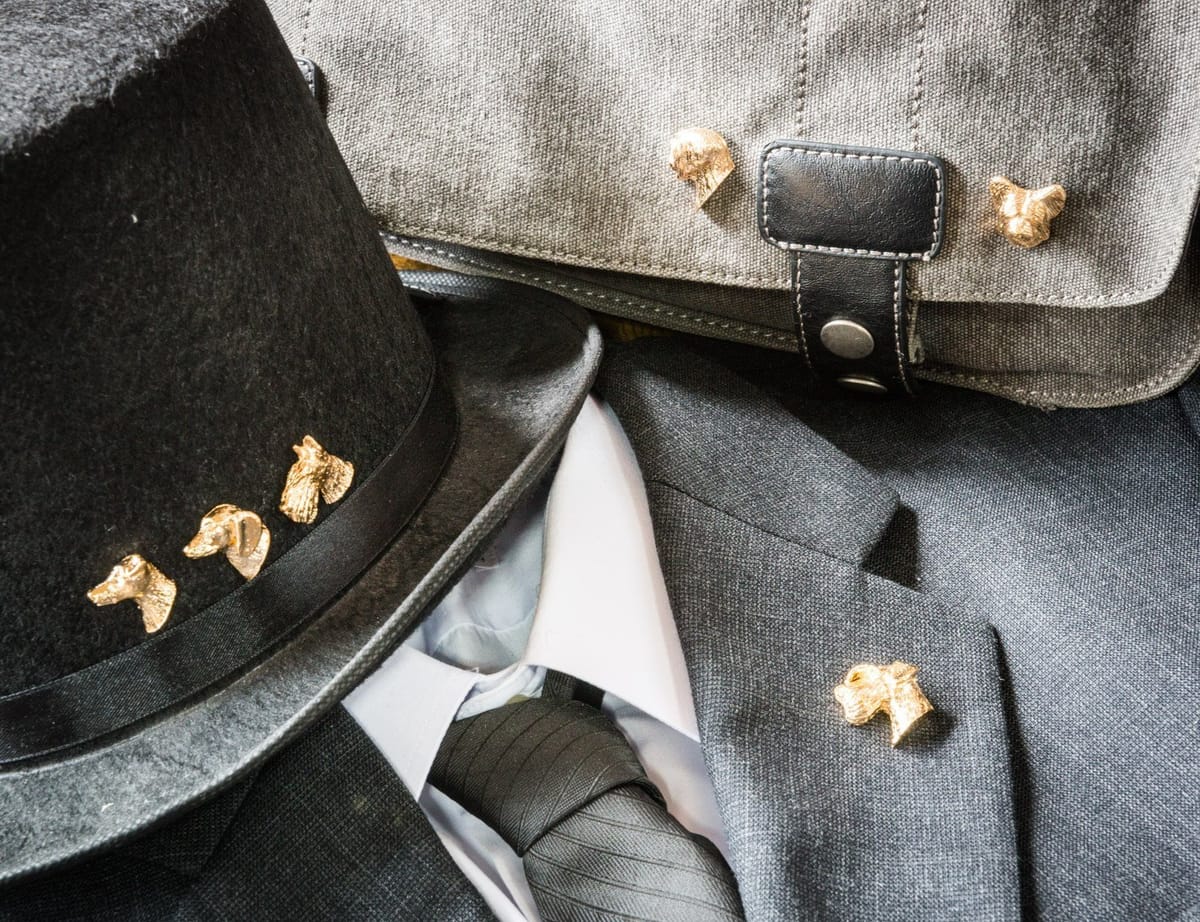 【全136種】 イギリス製 22ctゴールドプレート アート ドッグ ラペル ピンバッジ コレクション商品サイズ: 1.4 x 1.8 x 1.0 cm 重量: 3.1 g【合金製(22金コーティング)】 高級感、クラシック感、アンティーク感のあるアクセサリーとして、インテリアとしてお部屋の装飾にさりげなくワンポイントのアクセントとして。犬種の特徴、毛並みや輪郭もとても忠実に再現された芸術性の高い仕上がりとなっています。プレゼントや贈り物、ギフトにもピッタリなアイテムです。スーツの襟元を飾るラペルピン・ブローチの他、衣類や鞄、持ち物のさりげないアクセントに、壁やコルクボードにお洒落な押しピン(画びょう)としてもお使いいただけます。 イギリスで50年以上の歴史と伝統を持つメーカー オールデン・アーツで造られている 精巧で重厚感・高級感のある金属製(合金製・22金コーティング)ドッグ ラペルピン(ピンブローチ、ピンバッジ)です。犬種の特徴を忠実に 毛並みも緻密に再現されており とても芸術性の高い仕上がりとなっています。【オールデン・アーツ】 約50年前にイギリス・ロンドンのコヴェント・ガーデンの露店から始まり、現在はドッグショーの世界を中心にイギリスの多くの愛犬家に親しまれているドッグアクセサリーメーカーです。製品の多くは当時のイギリスのデザイナー職人の手によってデザインされ、どの犬種のアイテムもとても精巧で芸術的センスの高い本格的な造りとなっていて、品のあるシルバー色、ゴールド色を帯びたこれらの製品は どの毛色の犬の飼い主様であっても 違和感なく使う事ができると 本国であるイギリスでは高い人気を誇っています。製品のすべては現在でもイギリスの職人たちの手によって一つ一つ丁寧に造り続けられています。※商品の写真は実物と相違点の無いよう細心の注意を払っておりますが、室内・野外、天候などの光環境や、お客様がご覧になっているパソコンやモニターの種類によって、実物との色合い等が若干異なって見える場合があります。また 一つ一つ手作業で より良い製品になる事を追求しながらの制作を続けているため 一部の種類の商品では犬種部分と留め具部分を繋ぐ箇所の 位置・角度・形状が同じ商品でも商品写真と変わる場合もあります。予めご了承いただけますようお願いいたします。万一商品の画像と実際の商品が大きく異なり、商品にご納得いただけない場合には、ご連絡いただけましたら返品・キャンセル等の対応をさせていただきます。