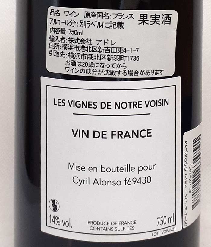 カリーヌ エ シリル アロンソ レ ヴィーニュ ド モン ヴォワザン 2021年 赤ワイン フランス ボージョレ 750ml ボジョレー ビオ ナチュラルワイン