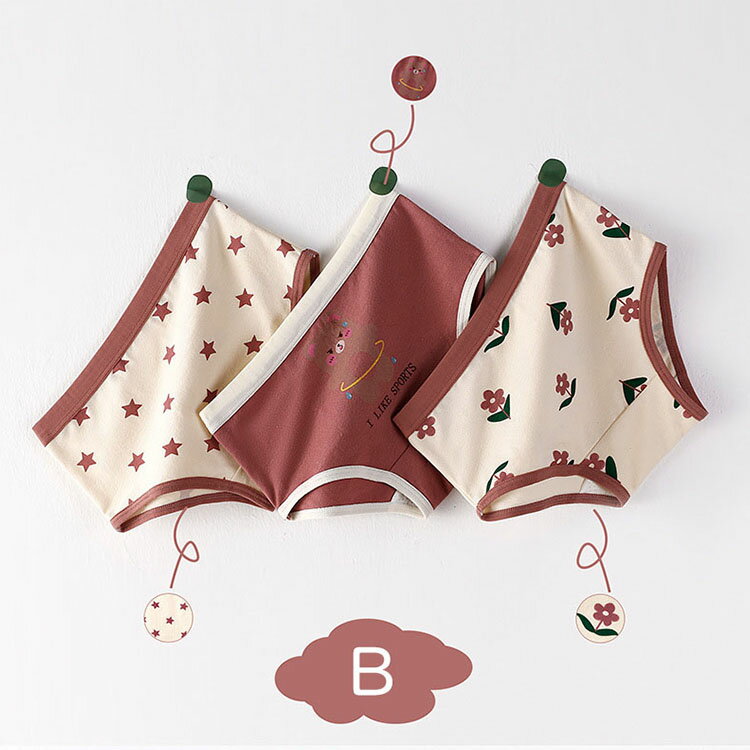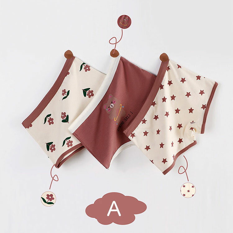 パンツ 子どもパンツ 女の子 キッズ ベビー ガール 女児 3枚セット 子供用 可愛い 下着 インナー 花柄 星柄 かわいい 綿 柔らか トランクス ブリーフ パンツ ボクサー・パンツ 入園 入学 四季通用 選べる2タイプ