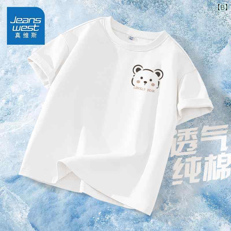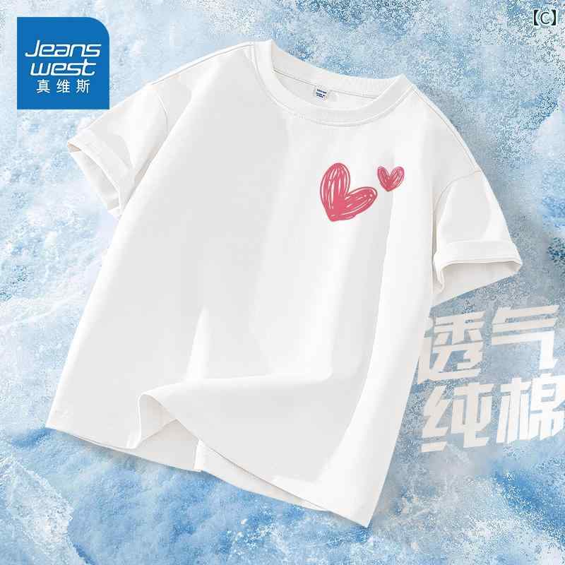 キッズ トップス シンプル JU Jeanswest 子供服 女の子 半袖 Tシャツ 子供用 2025 夏 綿 ラウンドネック トップ