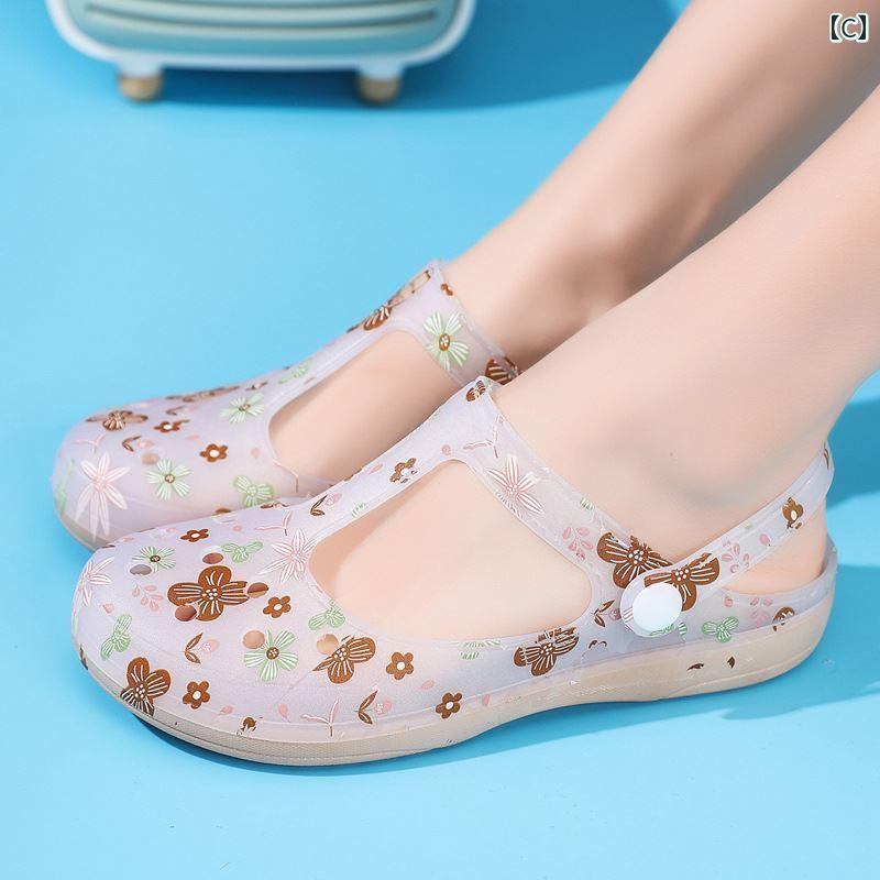 ナースサンダル シューズ 2025 軽量 滑り止め 夏 穴 靴 レディース フラット サンダル ナースシューズ アウトドア 包 頭 大きいサイズ ゼリー ビーチ シューズ