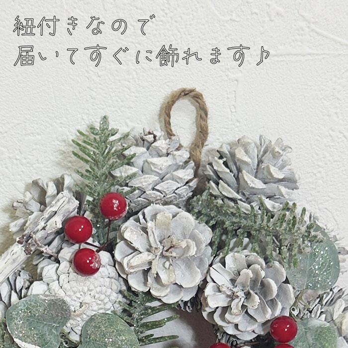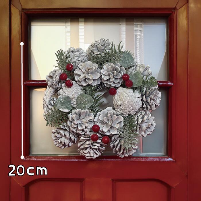 クリスマスリース ホワイト 20cm おしゃれ 北欧 ナチュラルリース 玄関 外 冬 飾る 壁掛け 紐付き ひも 家 お店 ギフト プレゼント かわいい 雪 Snow wreath christmas