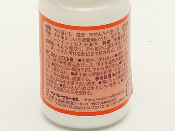 ■型番:C2595■商品名:トルトル■販売価格:385円(税込) / 350円(税抜)■メール便について:この商品はメール便には対応しておりません。■発送予定目安:4日以内(日祝日は除く)■サイズ:25ml■商品説明:天然みかん油が原料の汚れ落としです。手や革に付いた接着剤や油汚れなどを、安全できれいに取り除きます。■使用方法:布に少量取り、汚れ部分に塗布します。しばらく放置し、浮いてきた汚れを乾拭きでやさしく拭き取ります。■取扱いメーカー:クラフト社■【注意点】閲覧環境等によって画像の色合いが異なることもあります。◇在庫切れ等によって予定日内に発送できない場合はご連絡させていただきます。