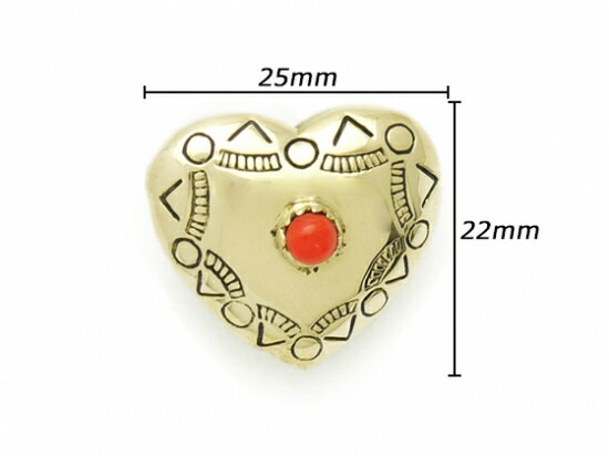 ストーンハートコンチョ コーラル(真鍮) 25×22mm 1ヶ ループ【メール便選択可】 [コンチョワールド] レザークラフトコンチョ ハートストーンコンチョ(ループ)