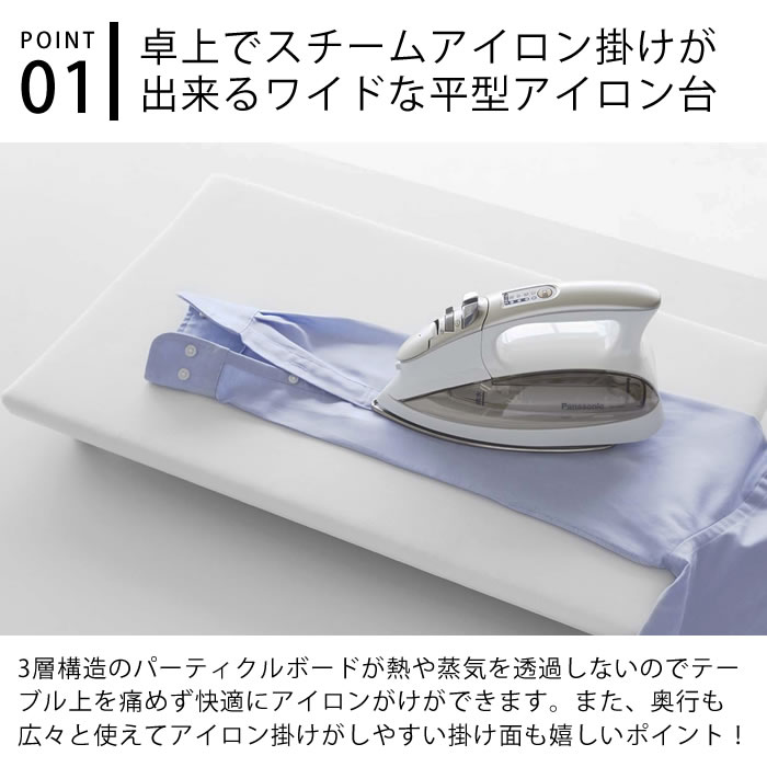 商品名 卓上 脚付き 平型 アイロン台 タワー 商品詳細 サイズ 約 W60×H6×D36cm ※卓上からアイロン台まで高さ:約4cm 重量 約2.4kg 材質 表面布:綿100% クッション材:ポリエステル 天板:木質繊維板 脚部:ABS樹脂 キャップ:シリコーン 検索キーワード 卓上脚付き 平型アイロン台 タワー アイロン台 平型 コンパクト 幅60cm アイロン スチーム アップリケ シャツ 山崎実業 tower 白 黒 ホワイト ブラック 5773 5774 ヤマジツ yamazaki おしゃれ ラッピング ラッピングNG卓上 脚付き 平型 アイロン台 タワー テーブルを痛めずにスチームアイロンが掛けられる平型の脚付きアイロン台 タワー 座りながらアイロンがけが出来る卓上用のアイロン台に、テーブルを痛めずスチームアイロンが快適に掛けられる、コンパクトな 平型のアイロン台が仲間入り。アイロン台は3層構造のパーティクルボードでスチームの蒸気や熱を透過せず、テーブルを傷め ません。平型の奥行あるワイドな掛け面で色々な衣類もしっかりアイロンがけ出来ます。 脚付きのアイロン台は少し高さがあり、衣類をアイロン台の下に滑り込ませられるので、立体的にアイロン掛けができ仕上りも良好。 また、脚のキャップ部分は接地面が丸くシリコン製なので、がたつかず滑りにくい仕様で安心してアイロン掛けが出来ます。 アイロン台自体はスリムなので、押し入れなどの隙間へ収納可能です。 関連商品 卓上脚付き 平型アイロン台 タワー S 卓上脚付き 平型アイロン台 タワー 平型ちょい掛けアイロン台 タワー 平型アイロン台 タワー 暮らしが変わる!マグネット収納 一覧 シンプル&クールな暮らしに「tower」一覧 ナチュラルで優しい空間に「tosca」一覧