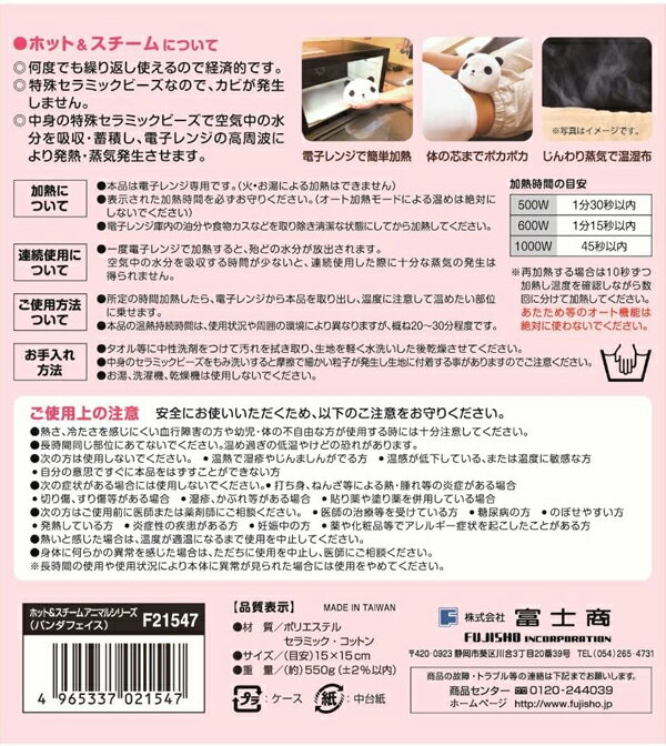富士商 ホット&スチームパッド アニマル パンダフェイズ F21547 リラックス 癒し 冷え対策