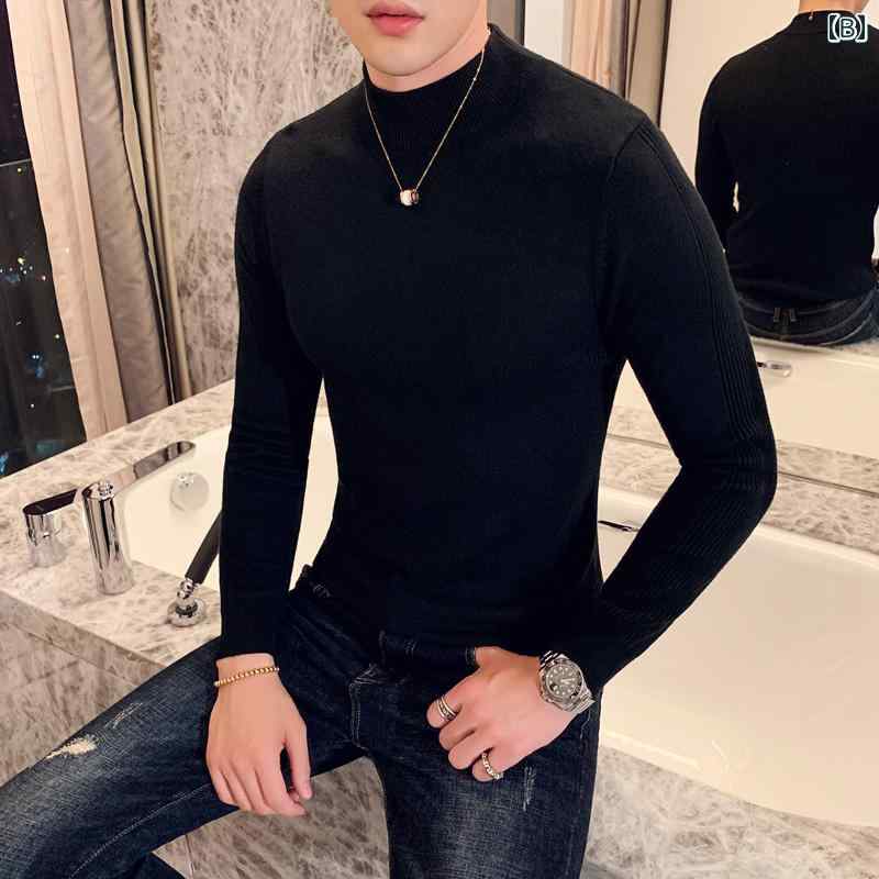 春 コーデ メンズ 用 服 シンプル ファッション オシャレ 大人 かっこいい 大きいサイズ ストリート 紳士服 ハーフ タートルネックセーター 韓国スタイル ニット セーター スリムフィット 厚手 暖かい レイヤリング シャツ 無地