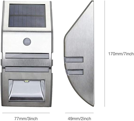 ソーラーライト 太陽ステンレス 鋼誘導ライト 屋外ライト 壁ライト 屋外ガーデンライト 屋外 壁掛け 庭先 表玄関 駐車場などで活躍 (色 : Silver, Size : 17X7.6X5CM) 父の日