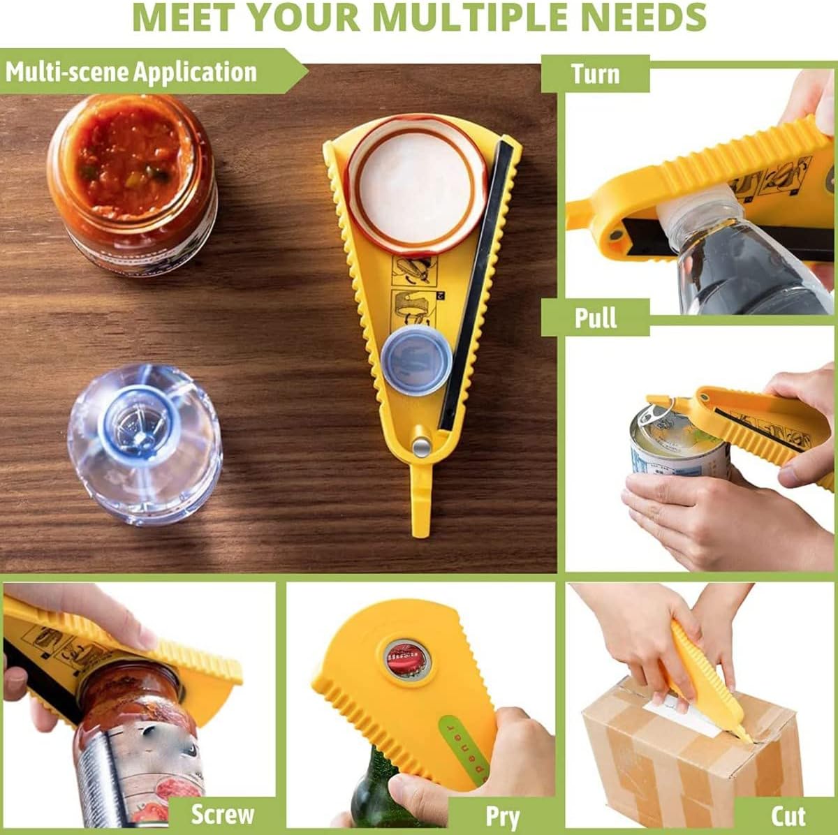 送料無料 缶切り ジャーオープナー ボトルオープナー 多機能 栓抜き キャップ オープナー びんふた 缶切り 安全簡単 手動缶切り ふた開け キッチン雑貨 回転缶切り ペットボトルオープナー キャップ外しキット ワイン 飲料 調味料 瓶ふた開け 女性・子供・手の弱い方向け