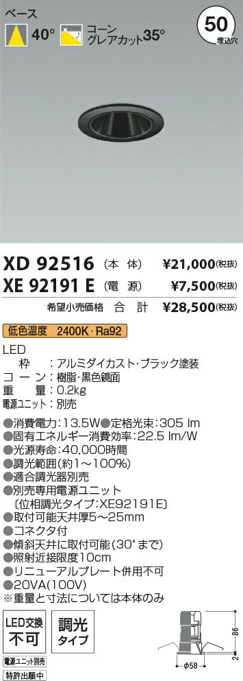 XD92516+XE92191E φ50 2400K LEDグレアレスダウンライト KOIZUMI コイズミ照明 【3980円以上(税込)で送料無料】