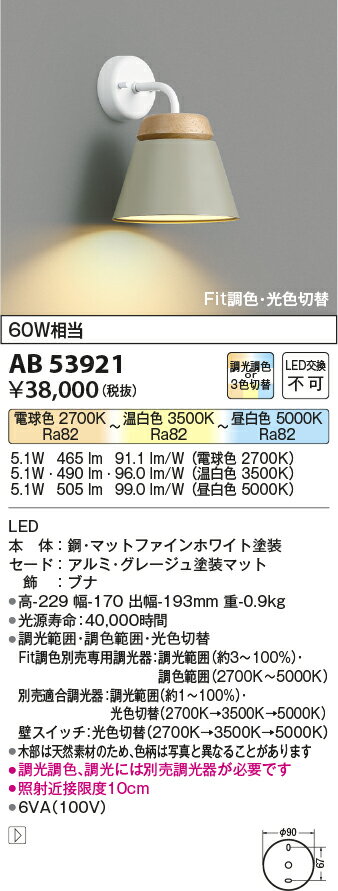 KOIZUMI コイズミ照明 LED調光調色ブラケット AB53921