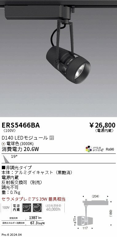 ERS5466BA 遠藤照明 LED スポットライト セラメタプレミア35w器具相当 高演色Ra96 電球色 3000K 非調光タイプ