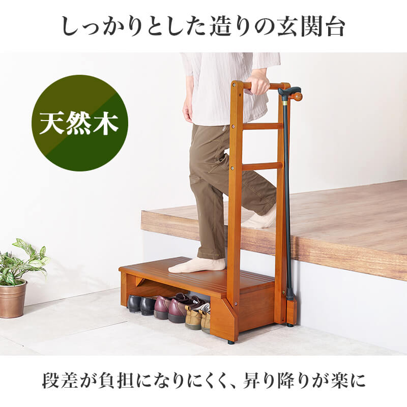 玄関踏み台 おしゃれ 手すり付 萩原 木製 収納 片側 段差 負担軽減 踏み台 玄関 靴 収納 手すり つかまり立ち アジャスター ガタつき防止 VH-7938-S