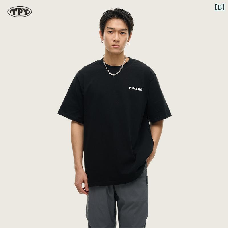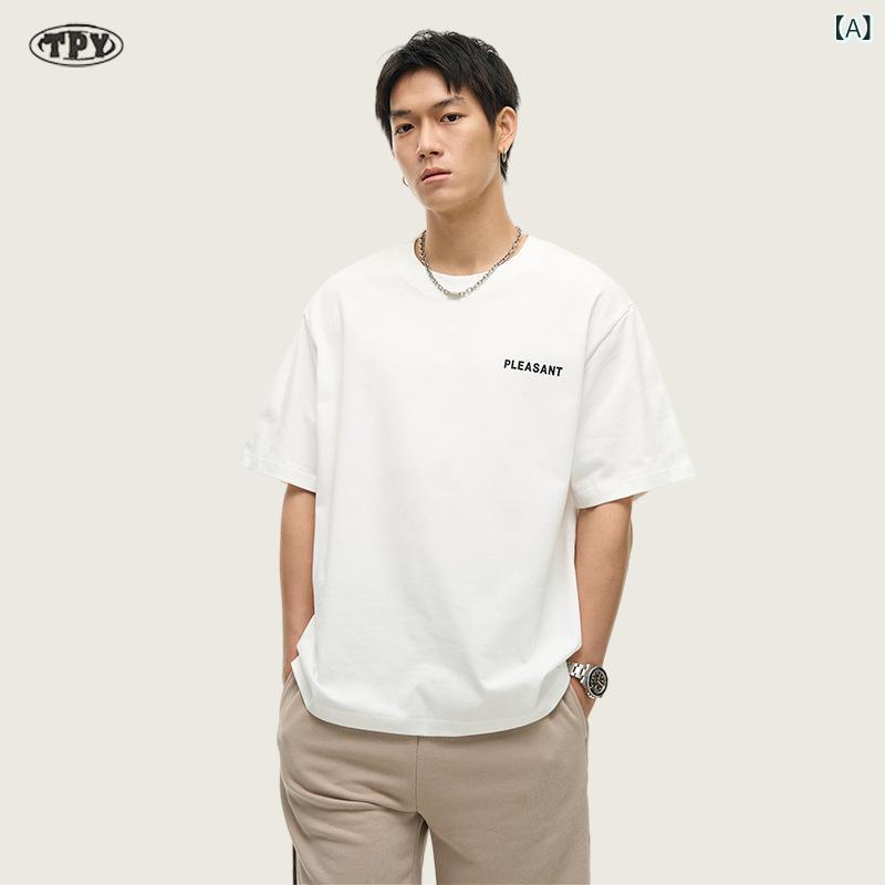 Tシャツ メンズ 男性用 半袖 コットン プリント ロゴ クルーネック トップス カットソー ルーズフィット 白 黒