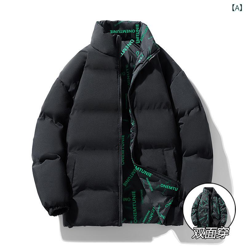 綿ジャケット メンズ 男性用 秋冬 厚手 防寒 暖かい リバーシブル ポリエステル 無地 ブラック ピンク系 カーキ 霧青