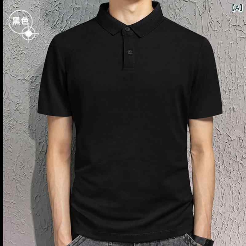 ポロシャツ メンズ 男性用 半袖 トップス カジュアル 普段着 薄手 ポリエステル混紡 無地 黒 白 グレー 赤 青