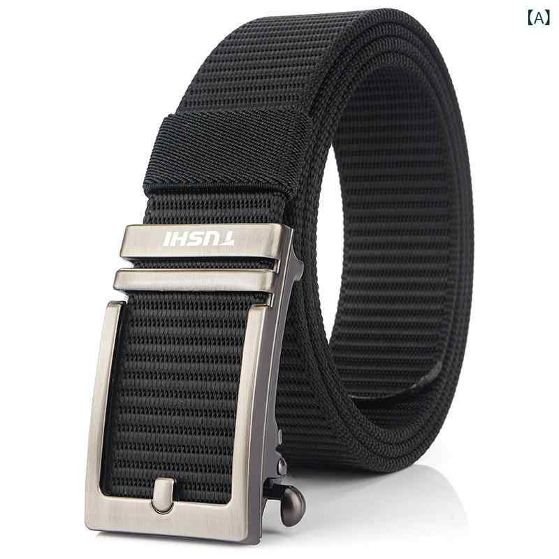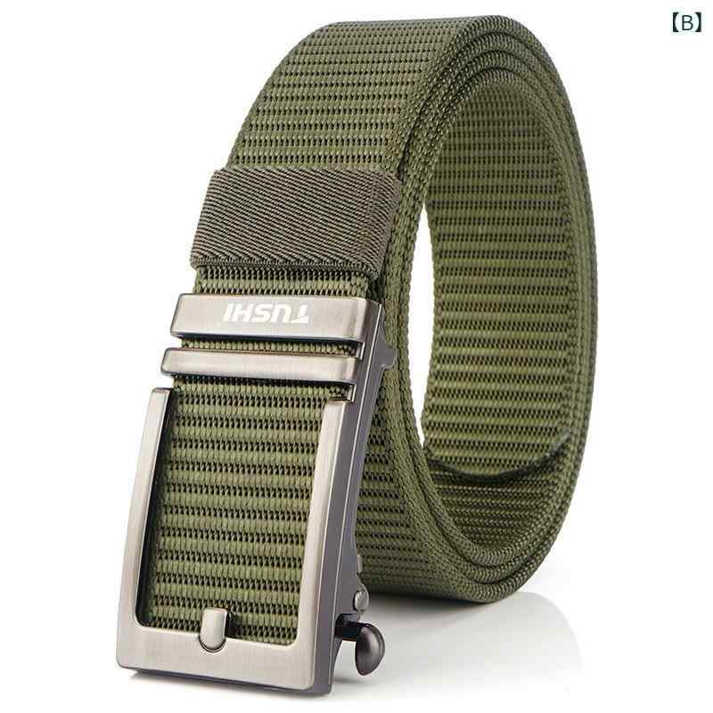 ベルト 男性用 紳士用 ナイロン キャンバス 無段階調整 オートロック 合金 バックル カジュアル スタイル 黒 カーキ ブラウン 幅広 120cm 125cm