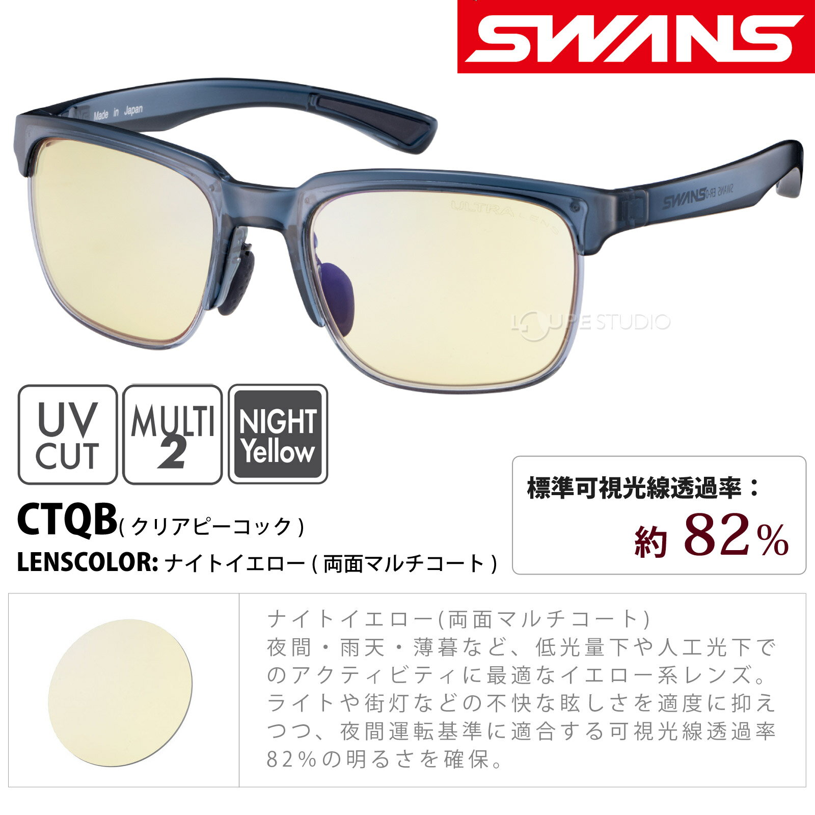 サングラス 夜間 運転 夜にかける 薄い色 er-1 スクエアタイプ ER1-0121 CTQB UVカット 対向車 ライト 眩しい 対策 スワンズ SWANS クリスマスプレゼント クリスマス