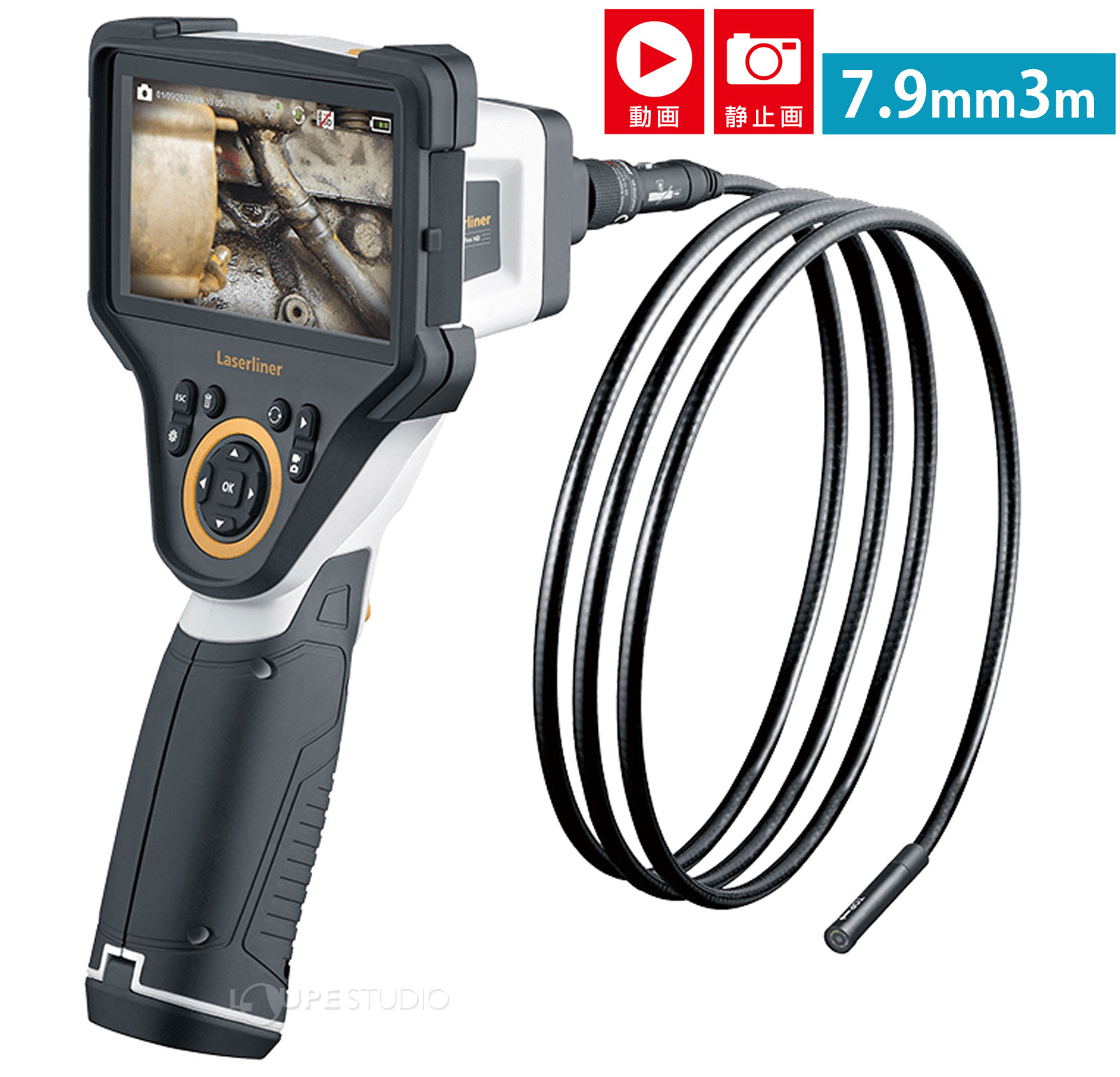 工業用内視鏡 ビデオフレックスHDマイクロ カメラ ファイバースコープ 防水 配水管 空調設備 ダクト 天井裏 保守点検 撮影 保存 暗闇 LED内蔵商品番号:HK-UM-091ケーブル長2m、直径3.9mmのカメラケーブル極細カメラケーブルで狭所の検査に重宝工業用内視鏡 ビデオインスペクター3D 2M カメラ ファイバースコープ 防水 360度 先端可動式 配水管 空調設備 ダクト 天井裏 保守点検 撮影 保存 商品番号:HK-UM-092先端可動式工業用内視鏡。ぐりぐり ぐるっと360°自在に操るファイバースコープ。全方向360度、湾曲最大160°工業用内視鏡 ビデオフレックスG4 ウルトラM10 カメラ ファイバースコープ 配水管 空調設備 撮影 保存 転送商品番号:HK-UM-062ケーブル長:10m、直径9mmのカメラケーブル標準装備工業用内視鏡 ビデオフレックスG4ウルトラスリム ファイバースコープ パイプ 配管 配水管 空調設備 撮影 保存 転送商品番号:HK-UM-064ケーブル長:1.5m、直径6mmのカメラケーブル標準装備工業用内視鏡 ビデオフレックスG4 マックス パイプ 配管 穴 狭所 エンジンルーム 撮影 保存 転送商品番号:HK-UM-0692~30cmのカメラ焦点範囲でエンジンルームや壁穴・パイプなどの対象物に便利。4580313193805 ls@HK-UM-090工業用内視鏡 ビデオフレックスHDデュオ カメラ ファイバースコープ 防水 配水管 空調設備 ダクト 天井裏 保守点検 撮影 保存 暗闇 LED内蔵ケーブル長3m、直径7.9mmのカメラケーブルボタン操作でフロント・サイドカメラを切替 問い合わせ品番:4580313193805工業用内視鏡 ビデオフレックスHDデュオ カメラ ファイバースコープ 防水 配水管 空調設備 ダクト 天井裏 保守点検 撮影 保存 暗闇 LED内蔵スペックカメラケーブル直径7.9mm、ケーブル長3m解像度/ズーム1280×720ピクセル/2倍デジタルズームカメラ解像度(記録)1280×720ピクセル(静止画/JPEG、動画/MPEG-4)焦点距離フロント/3~8cmサイド/2~5cmLEDフロント/6個サイド/1個視野角80°最小曲げ半径75mm保護性能操作部/IP54、カメラ部分/IP67、耐油/耐ガソリン動作環境温度【操作部】-10~50℃、湿度【カメラ部分】0~50℃、湿度保管環境温度-10~70℃、湿度重量/サイズ1304g(バッテリー・ケーブル含む)310×210×140mm(ホルダー含む)ディスプレイ5インチTFTモニター記録メディアマイクロSDカード(最大32GB)電源リチウムイオン充電池(内臓)稼働時間/充電時間約5時間/約3時間PSEマークについて※規格等により製品安全4法に関する製品ではありません。当製品は、本体内蔵かつ取り外しできないリチウムイオン電池(またはリチウムポリマー電池)であり、経済産業省が定めるリチウムイオン蓄電池の規制の対象外となるため、PSEマークは付与されていません。 UMAREX ※仕様及び外観は改善のため、予告なく変更することがあります。撮影 保存 排水溝 水道管 細い場所や手の届きにくい場所の確認などに