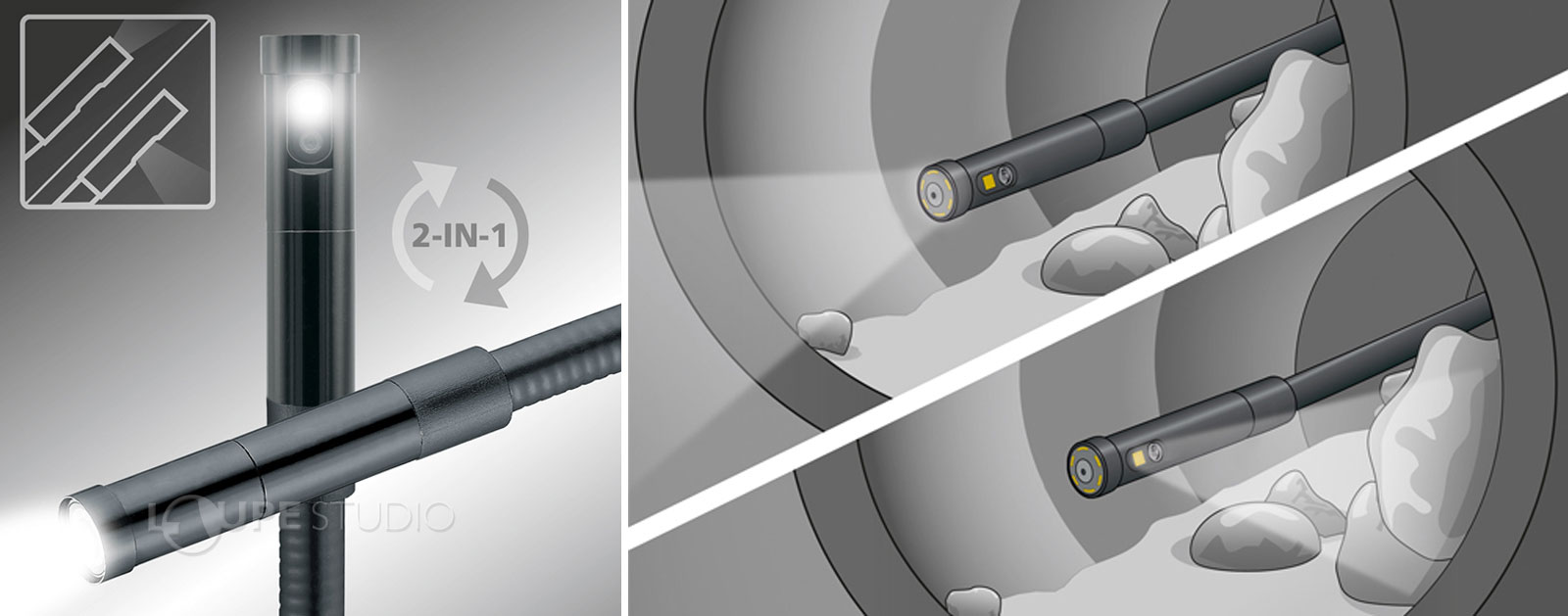 工業用内視鏡 ビデオフレックスHDデュオ カメラ ファイバースコープ 防水 配水管 空調設備 ダクト 天井裏 保守点検 撮影 保存 暗闇 LED内蔵