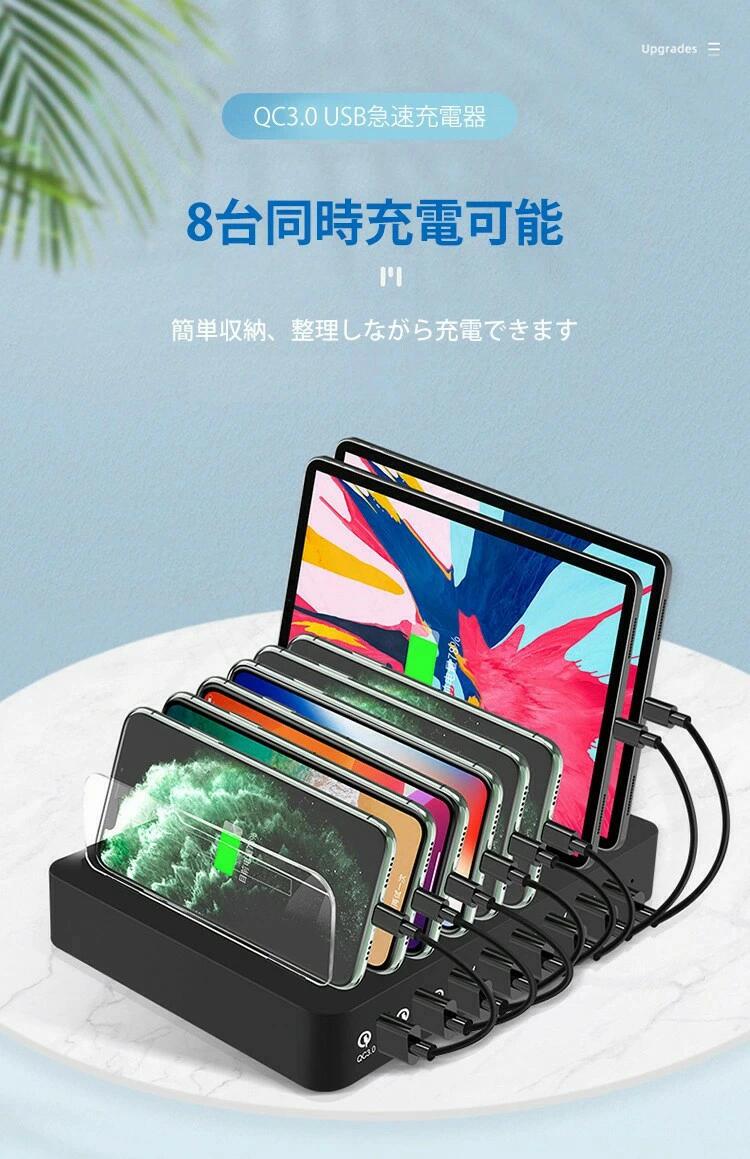 【買い物マラソン 当店ポイント5倍】充電ステーション おしゃれ かわいい 家族 急速充電器 簡単収納 充電スタンド USB充電ステーションQC3.0 8台同時充電可能 8つUSBポート USB充電器 USB充電スタンド 収納充電 iPhone i