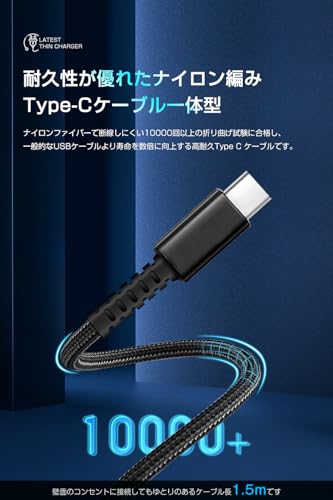 USB充電器 Type-C PD 20W 急速充電器 USB-Cケーブル一体型(超薄型/編みケーブル&QC3.0 USB-Aポート/折畳みプラグ