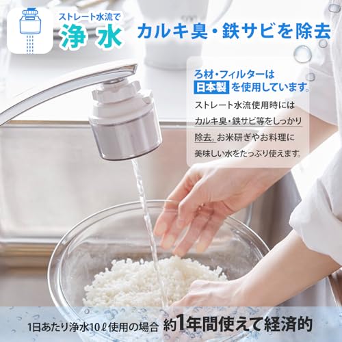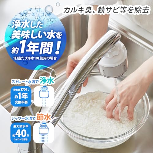本体ホワイト/7×7.2×高さ7.5cm/RSMX-3087・Style:本体・パッケージ個数:1・カルキ(塩素)臭やカビ臭、鉄サビ、ゴミ等を除去し、おいしい水がいつでも飲めます。・[サイズ]約7×7.2×高さ7.5cm・[取付水栓]先端にふくらみのある外径16mmの丸型自在水栓、外ネジ式泡沫水栓(ネジ部外径22mmネジ山ピッチ1.25)、内ネジ式泡沫水栓(ネジ部外径24mmネジ山ピッチ1.0)カルキ(塩素)臭やカビ臭、鉄サビ、ゴミ等を除去し、おいしい水がいつでも飲めます。 浄水量たっぷりの3700L、1日10L使用で1年間不要です。 シャワー切替で洗い物に大変便利。最大で約40%の節水効果が期待できます。 [サイズ]約7×7.2×高さ7.5cm [取付水栓]先端にふくらみのある外径16mmの丸型自在水栓、外ネジ式泡沫水栓(ネジ部外径22mmネジ山ピッチ1.25)、内ネジ式泡沫水栓(ネジ部外径24mmネジ山ピッチ1.0) [素材・材質]ABS樹脂、ポリアセタール、シリコン、ステンレス、活性炭、PVA、不織布 [生産国]中国 ●シャワー(原水)は50℃以下、ストレート(浄水)は35℃以下でご使用ください。