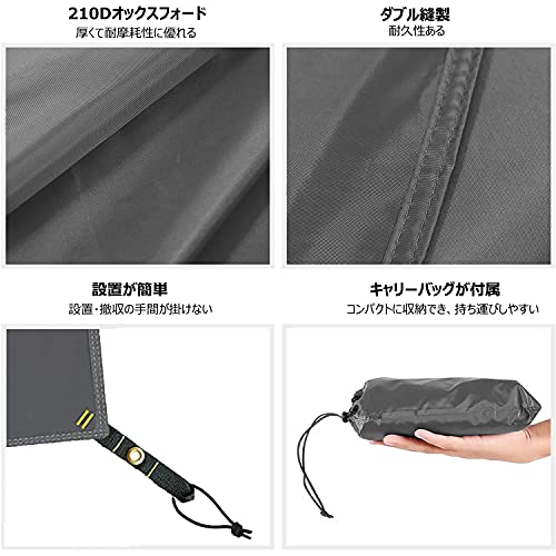 270*270cm/-/-・Color:270*270cm・厚手の210D生地テントシートは210Dポリエステルオックス素材を採用し、強度不足の心配必要がない、薄い素材のシートより耐久性があります。優れた耐摩耗性があり、長年の使用でも摩耗しにくく、耐久性も優れます。防水性と耐久性を兼ね備えたテントシートです。・両面防水加工テントシートに防水効果にすぐれたPUコーティングを施して、耐水圧3000mmになります。地面からの湿気や浸水をシャットアウトし、地面の水が滲み出すや濡れる心配がありません。・便利な固定穴テントシートに固定穴ついてます。ハトメも補強します。ペグで固定です。ハトメにショックコードも搭載し、取り付けは簡単です。ポールとガイロープあれば簡易タープとしても使うことが出来ます。・コンパクト&収納袋付き軽量でコンパクトに折り畳める為、ツーリングや登山にも最適です。収納袋付きで持ち運び便利です。用途に合わせて使い方もいろいろです。日除けの簡易タープとして利用出来ます。・仕様材質:210Dポリエステルオックス;耐水圧:3000mm;グラン