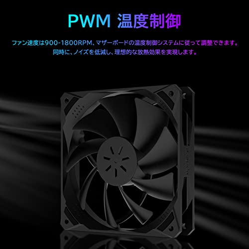 黒PWM-3本黒い-PWM-4Pin/-/NK12BK4-3-direct jp・Style:黒PWM-3本・高性能冷却ファンコンピュータケースまたはCPUラジエーター用の最も一般的な汎用ファン120mmサイズのフレーム。 正方形のデザインは、超静音動作を犠牲にすることなく、より高い気流を生み出し、それによって効率的な換気を提供します。・PWM機能を搭載PWMは、回転数を抑制し、発熱量に応じて自動的に回転速度を変化させる制御です。最適な冷却性能を発揮するために、CPU温度によってPWMファンが自動制御できます。900RPM低転数から最大1800RPM高転数までどの回転数も対応します。組み込まれた防振ラバーによる高い防振性能をを発揮しています。パワフル風量と静音を両立するアイテムです。・静かで効率的軽量素材で作られており静かに送風することができます。ファンの四隅には衝撃吸収ゴムパッドが装備されており、優れた防振性とファン安定性を実現しています。ノイズを低減させ静音性を高めています。?長寿命の油圧ベアリングを装備、40 000時間連続回転です。・優れた