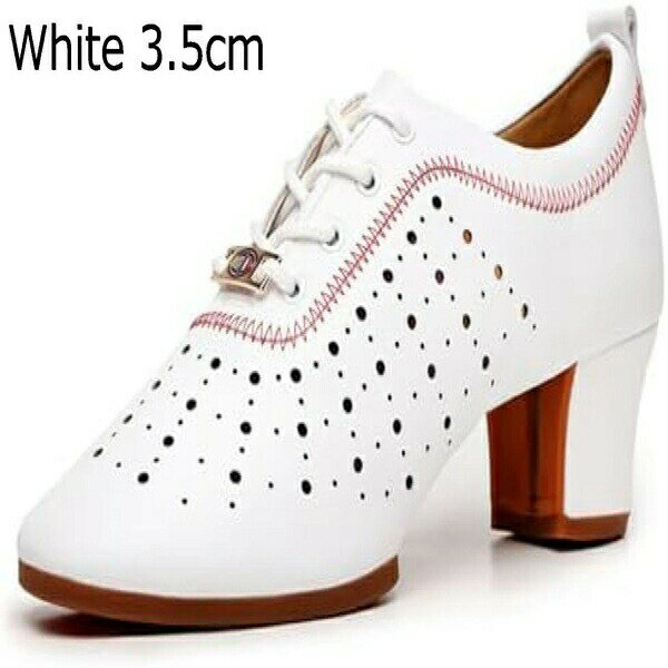 女性のラテン社交ダンスシューズ滑り止め3.5センチヒールレースアップスプリットソールのモダンなダンススニーカー