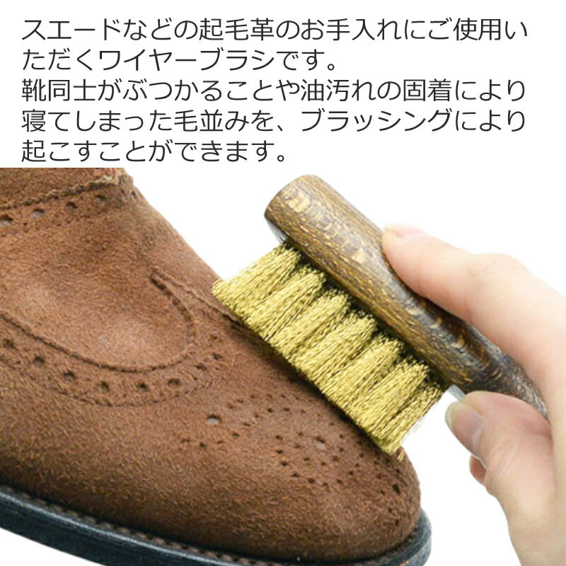 ドイツ製のスエード・起毛革用の真鍮ブラシです。 コシの強い真鍮製のワイヤーブラシです 靴同士がぶつかることや油汚れの固着により寝てしまった毛並みを、ブラッシングにより起こすことができます。 ブラシの柄は木製で、木肌が美しい高級感のある仕上がりです。 ■素材:真鍮 ■本体サイズ:約15cm(全長) ■重量:約40g ■毛の長さ:約2cm ※木材の色、木目などには個体差がございます。予めご了承下さい。 ※できるだけ忠実に再現するよう努力しておりますが、ディスプレイ画面等の環境上、ページで見た色と実際の商品の色とは多少違う場合がございます。予めご了承下さい。 【検索サポートワード】 靴用ブラシ くつようぶらし brush レザー用品 ケア用品 お手入れ用品 真鍮 しんちゅう ワイヤー わいやー 硬い かたい ジャーマンブラシ#10 ドイツ製 made in Germany COLUMBUS ころんぶす コロンブス おすすめ お奨め オススメ 人気ブランド 人気商品 楽天通販 ネットショッピング 在庫あり 新品 正規品 安心 プレゼント 贈り物 ギフト お祝い 誕生日 メール便 めーるびん クリックポスト ポスト投函