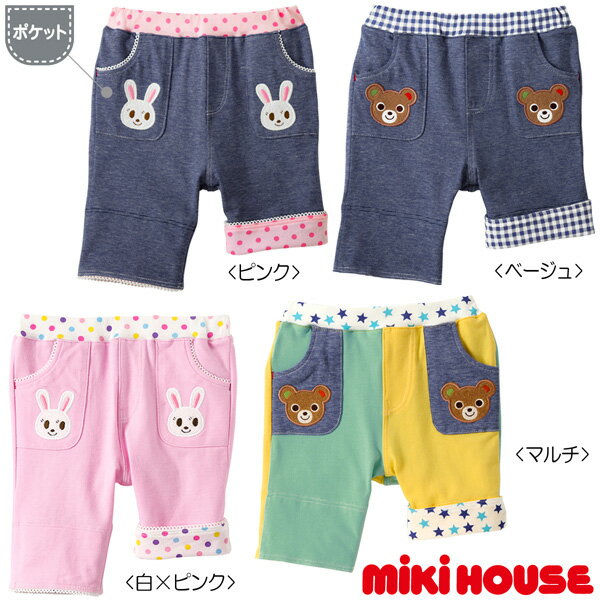 セール30%OFF!ミキハウス プッチー&うさこ 6分丈ストレッチパンツ(120cm・130cm)ミキハウス正規販売店●メール便OK