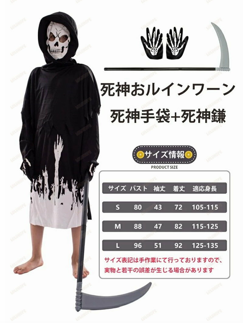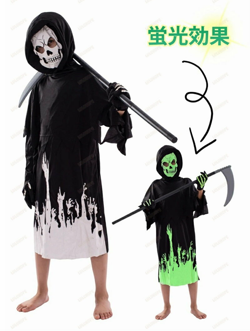 ハロウィン 衣装 子供 死神 どくろ 悪魔 骸骨 コスプレ 鎌付き 蛍光効果 ベビー 女の子 男の子 子供用 ハロウィン仮装 赤ちゃん 着ぐるみ コスチューム ハロウィーン衣装 キッズ コスプレ コスチューム