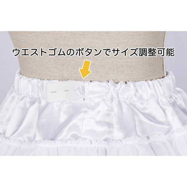 生地に厚みがある硬めのハードチュールを使うことによってよりパニエとしての効果が発揮できる商品です。露出対策でスカートの中が見えにくい効果も。 短すぎるスカートにコーディネートとして合わせても可愛く着こなせます。 ◆詳細◆ 内容:パニエ ×1 洗濯:弱い手洗い可 ※クリーニングはお避けください。色落ちの可能性がありますので、他のものとの洗濯はお避けください。アイロンは中温で当て布を使用してください。 メーカー:Clearstone社、中国製 ◆サイズ◆ 着丈:ミニ=28cm/レギュラー=45cm ウエスト:66~130cm ◆商品説明◆ ウエストのゴムのボタンホールにボタンを留めることで、サイズ調節可能。 ウエストを絞ればキッズサイズにも対応します。 ◆ご注意◆ 生産時期やロット、デザインによって、多少サイズ・色・柄が異なる場合があります。 摩擦や水濡れにより色移りする恐れがありますのでご注意ください。 商品画像は可能な限り実物の色に近づくよう調整しておりますが、お使いのモニター設定、お部屋の照明等により実際の商品と色味が異なって見える場合がございます。スカートをふんわり!ハードパニエサイズ調節でキッズにも対応