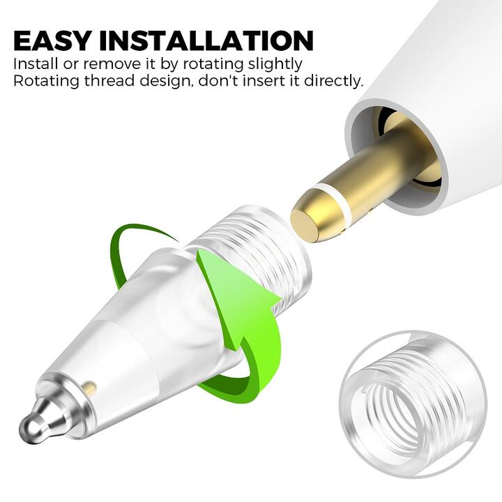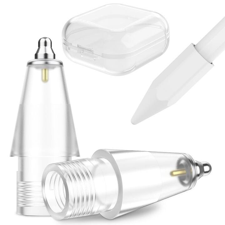 送料無料 AHASTYLE アップル Pencil 1/Pencil2対応 交換用ペン先 メタルチップ 金属先端 白いペン先保護キャップ付き同色交換用ペン先2点、白い保護キャップ、携帯用クリアケース付(ホワイト、クリア)2色選択