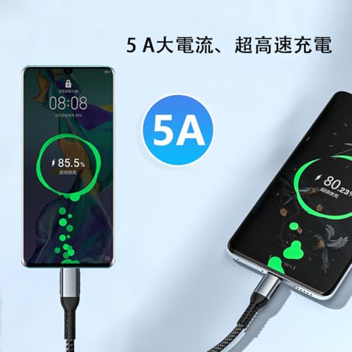 商品情報商品の説明【PD対応・100W急速充電】本製品USB C ケーブルは最大100Wの高出力に対応し、ノートPCやタブレット端末、スマートフォン等の幅広いUSB-C機器に急速充電が可能。?※本製品はデータ転送及び充電にのみ対応し、映像出力には対応しておりません。 【480Mbpsデータ転送】USB 2.0基準で最大480Mbpsのデータ転送を対応し、100曲ごとに5秒ごとに転送速度を提供しています。 端子部には金メッキ加工を施しており、確実に信号を伝送するための設計もありますので、耐久性を確保しつつ安定の転送ができます。 【超耐久・断線にはサヨナラ】アルミ合金シェルとナイロンファイバー被覆により、10000回以上の折り曲げ試験に合格していると謳っています。端子部には金メッキ加工が施されており、耐久性と安定性を両立。 【安全保護】過電流/過熱/短絡保護およびE-markerスマートチップを搭載し多層シールドも内蔵しており、安全で安定した電源を提供します。高速充電とデータ転送に最適な選択で、自宅やオフィスで高速充電を楽しめます。 【高品質素材・驚くほど柔らかい】柔軟性に高いナイロン編みを採用して、曲げたり巻いたりしても断線しにくく絡みにくいUSB-C ケーブルです。ぐちゃぐちゃしていた従来のケーブルとは違い、スっとまとまり絡みづらく、デスク回りやベッド周り、電源周りがすっきりします。主な仕様 【PD対応・100W急速充電】本製品USB C ケーブルは最大100Wの高出力に対応し、ノートPCやタブレット端末、スマートフォン等の幅広いUSB-C機器に急速充電が可能。?※本製品はデータ転送及び充電にのみ対応し、映像出力には対応しておりません。 【480Mbpsデータ転送】USB 2.0基準で最大480Mbpsのデータ転送を対応し、100曲ごとに5秒ごとに転送速度を提供しています。 端子部には金メッキ加工を施しており、確実に信号を伝送するための設計もありますので、耐久性を確保しつつ安定の転送ができます。 【超耐久・断線にはサヨナラ】アルミ合金シェルとナイロンファイバー被覆により、10000回以上の折り曲げ試験に合格していると謳っています。端子部には金メッキ加工が施されており、耐久性と安定性を両立。 【安全保護】過電流/過熱/短絡保護およびE-markerスマートチップを搭載し多層シールドも内蔵しており、安全で安定した電源を提供します。高速充電とデータ転送に最適な選択で、自宅やオフィスで高速充電を楽しめます。 【高品質素材・驚くほど柔らかい】柔軟性に高いナイロン編みを採用して、曲げたり巻いたりしても断線しにくく絡みにくいUSB-C ケーブルです。ぐちゃぐちゃしていた従来のケーブルとは違い、スっとまとまり絡みづらく、デスク回りやベッド周り、電源周りがすっきりします。