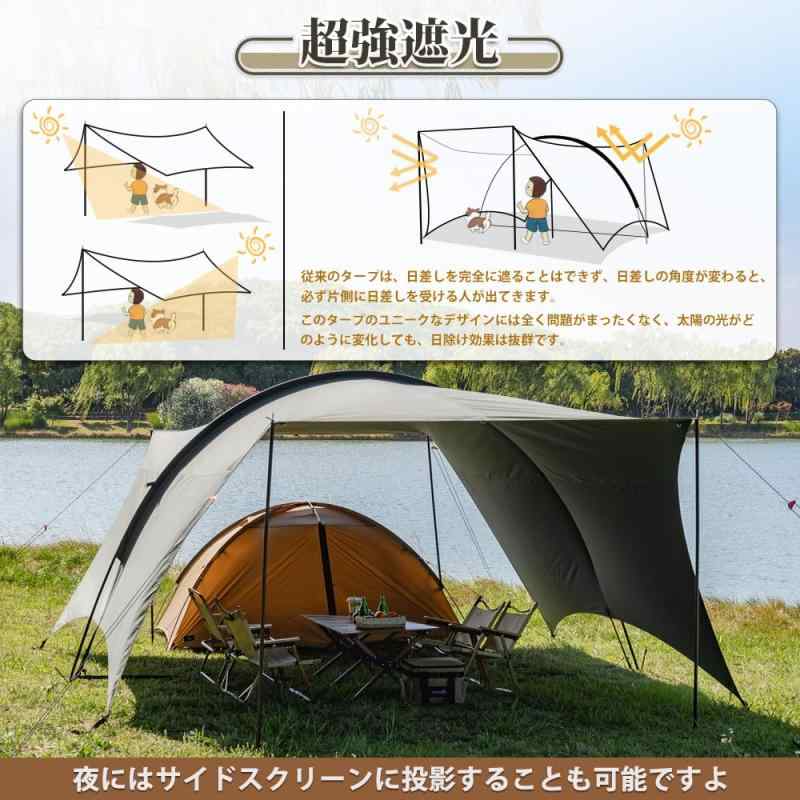 TOMOUNT タープ 大型TCシェード TCタープ 日よけ 大空間 サンシェルター アウトドア キャンプキャノピー [HARU TARP]…