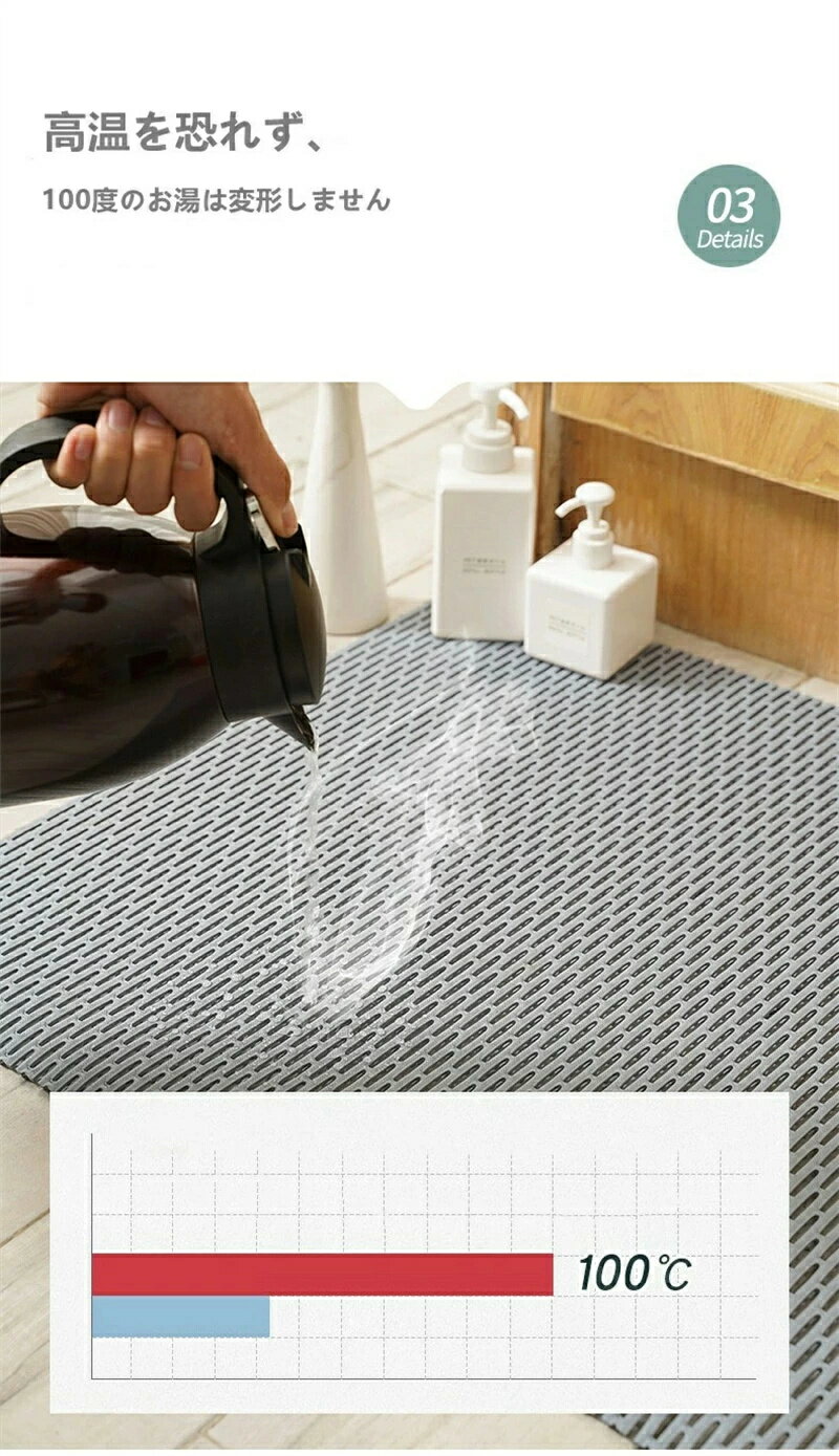 【両面滑り止め】裏面は密集した橋脚式支柱を採用しており、優れた滑り止め性能を発揮して滑り止め効果は抜群です。安心と安全のためには、高齢者、子供、妊婦など様々な人に必要です。 【安全素材】環境に優しいPVC素材、抗菌速乾防カビ、無毒性の検証を通じて、丈夫や柔軟環境安全材料から作られた滑り止めマットです。効果的に涼しく、断熱することができます。 【自由DIY】柔軟性が強く、任意に折り曲げて変形しにくく、丈夫で長持ちします。様々なシーンに対応していますので、形とサイズは自由に裁断ができるから,ご必要のように、自由にDIYください。 【高速排水】6 mmの透水穴の設計、水切れがよく、水たまりを防止します。浴槽に掛けて干すだけで乾きが速いです。優れた防カビ・抗菌効果、超耐久性があり、常に清潔で安心してご利用頂けます。 【適用範囲】この滑り止めマットは浴室、台所、トイレ、プールなどの滑りやすい床に適しています。高齢者、子供、妊婦など様々な人に安心と安全ように欠かせない介護用品です。(より大きなサイズが必要な場合は、カスタマーサービスにお問い合わせください)。 【サイズ】60*120cm