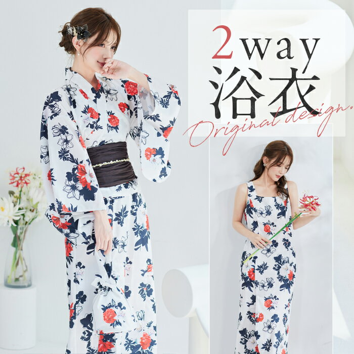 [正規品]【2〜3営業日で発送】浴衣 2way ワンピース 花柄 ホワイト レッド ブルー お揃い 可愛い 女性 レディース 一式 マリームーン malymoon【YK2510308】
