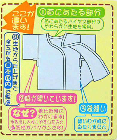 ★【メール便送料無料】 ・メール便は厚み3cm以内でポストへお届けになります。 ・お届け日指定・時間帯指定はできません。 ・代金引換ができません。 ・メール便送料無料の複数のご注文も送料無料。 (メール便サイズに収まらない場合は、宅配便又はメール便複数になる場合がありますが、送料無料です) 新生児の肌着に極上の2重ガーセ素材を使用しました。 縫目が当らない袋縫い。生成り色の国産の3枚組短肌着です。 【特徴】 ●袋縫いになっているので、縫目が肌に当りません。 デリケートなお肌にうれしい縫製です。 ●そのまま、入浴できます。 ●品質/綿100%(2重ガーゼ) ●サイズ/50〜60cm(3kg〜6kg) (日本製)(洗濯機)新生児の肌着に極上の2重ガーセ素材を使用しました。 縫目が当らない袋縫い。生成り色の国産の3枚組短肌着です。 【特徴】 ●袋縫いになっているので、縫目が肌に当りません。 デリケートなお肌にうれしい縫製です。 ●そのまま、入浴できます。