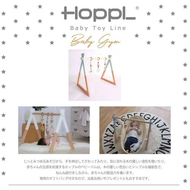 【正規品】ベビージム 木製 ベビー 赤ちゃん 0ヶ月〜 長く使える 歯固め 木製品 天然木 プレゼント プレイジム ベビージムセット 視覚 聴覚 淡い色 知育 お祝い 出産祝い ギフト プレゼント HOPPL ホップル 【TD】 【代引不可】