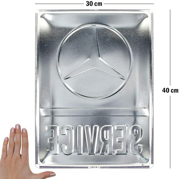 エンボス メタルサイン "MERCEDES BENZ SERVICE" メルセデスベンツ サービス 看板 縦40cm×横30cm ドイツ製 ■ 車 カーブランド インテリア 壁掛け サインプレート ブリキ看板 ティンサイン レトロ調