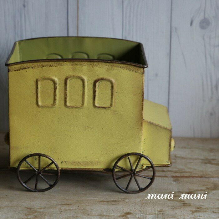 プランター「ワゴンポット」イエロー UN1483 ブリキ TIN 軽量 プランター 鉢 寄せ植え 花苗 ガーデン雑貨