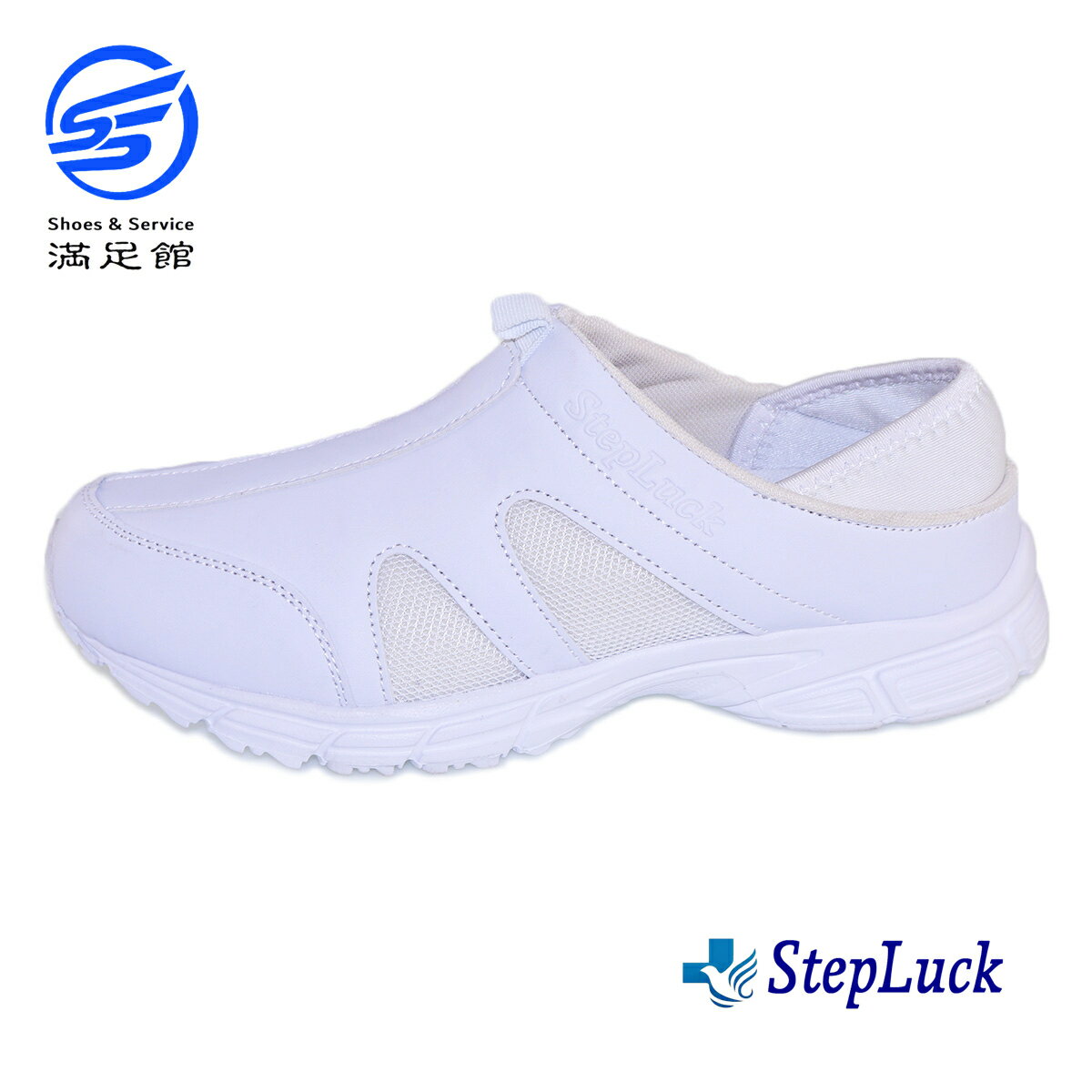 ブラック色はコチラ ネイビー色はコチラ 超軽量&幅広、かかとを踏んでサンダルスタイルにもなる 2Way クロッグシューズ。 靴底は軽量EVA素材+滑り止めゴム素材を使用、軽量快適と防滑性を両立。 取り外せるカップインソールは洗濯可能、靴の中をいつも清潔な状態にでき、なおかつクッション性と通気性を備えているので、履き心地が抜群。お好みで市販のインソールと交換することもできます。 脱ぎ履きがしやすいので、医療、介護、オフィスなど、仕事の現場で大活躍する1足です。 ■商品仕様■ 弊社オリジナルブランド:Step Luck ステップラック サイズ(cm):22.5 23.0 23.5 24.0 24.5 25.0 25.5 26.0 26.5 27.0 27.5 28.0 29.0 甲周り:3E (幅広) サイズ詳細(24.5cmの場合) 内長:25.3cm / 甲周り:23.0cm 甲材:合成皮革・ナイロンメッシュ 底材:EVA・合成ゴム 中敷:クッション性と通気性のカップインソール 企画製造:日本でオリジナル企画、中国で委託生産 ※写真を見るモニターやブラウザによって、実際の商品と若干の色の違いがある場合がございます。ご了承ください。 ◆お客様の声と、サイズ選びのポイント 「普段は、3Eの25です。サイズは、25.5にして、靴下履きでビッタリです。メッシュ生地だし、とても軽いです。お気に入りの一足になりそうです。」 「前にも購入して、仕事に履いてます!軽くて歩きやすいです!」 「とても軽くて履き心地抜群です値段も安くて言うこと無しです」 「3Eとあったのでゆったりなイメージでしたが、思っていたより履き口というか、足をいれる部分がきつく、履く時苦労します。ワンサイズ大きいものにすればよかったかも知れません。」 この靴は3E幅広ですが、特製カップインソールは厚みがあり、甲部分が窮屈に感じることがございます。 1〜2サイズ上でのご検討をオススメします。 ※サイズ感は個人差がございますので、参考までにお考えください - シューズ & サービス 満足館 の安心お買い物サービス - 1.送料は全国一律無料だからお支払い金額が分かりやすく安心! ※ 沖縄・離島は500円の追加送料をいただきます 2.サイズ交換の再送料も無料だから靴のネット通販でも安心! ※ ご返送いただく際の発払料金はご負担をお願いします 3.14時迄のご注文は即日発送[あす楽] 対応ですぐ届くから安心! ※ 土・日・祝は発送業務のみとなります 詳細は[支払・送料] [返品・交換]欄をご確認ください