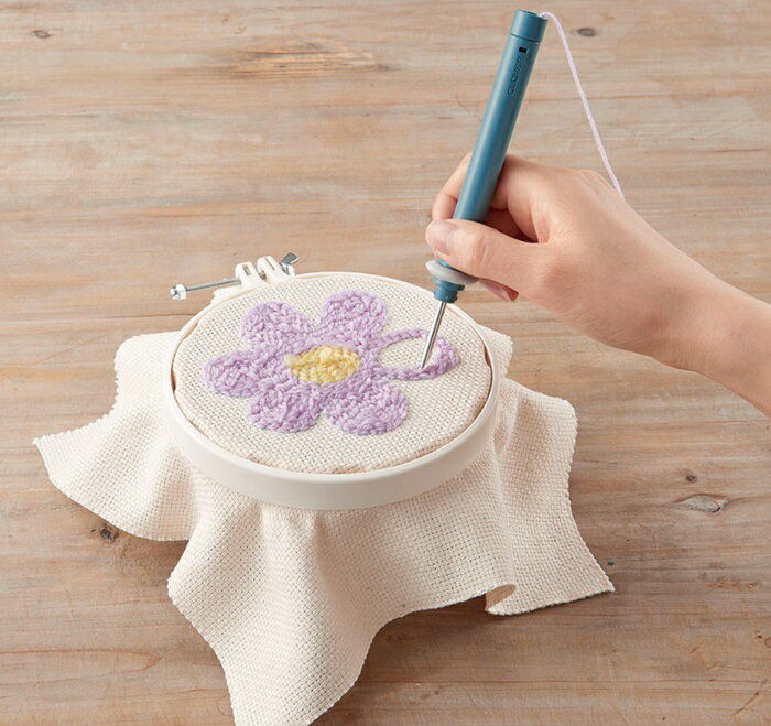 パンチニードルは、ニードルパンチとも呼ばれ、毛糸を通して、まるでイラストを描くかのようにステッチをする手芸です。特にクロバーパンチニードルは、ループの高さを4段階に調節可能なので、作品に立体感や変化を加えることが容易になります。 適した毛糸は、中細・合太・並太毛糸。棒針表記で3~7号のストレートの毛糸です。(※3~7号表記でもすべての毛糸が適しているわけではありません)細めの毛糸を使って、繊細な作品づくりに適しています。 このパンチニードルは、初心者から上級者まで、どんなレベルにも適しており、手作りの楽しさをより身近に感じさせてくれます。手軽に始められる手芸として、また新しい趣味を探している方にも最適です。クリエイティブな時間を豊かにするクロバーパンチニードルで、あなたの手作りライフをさらに楽しく彩りましょう。