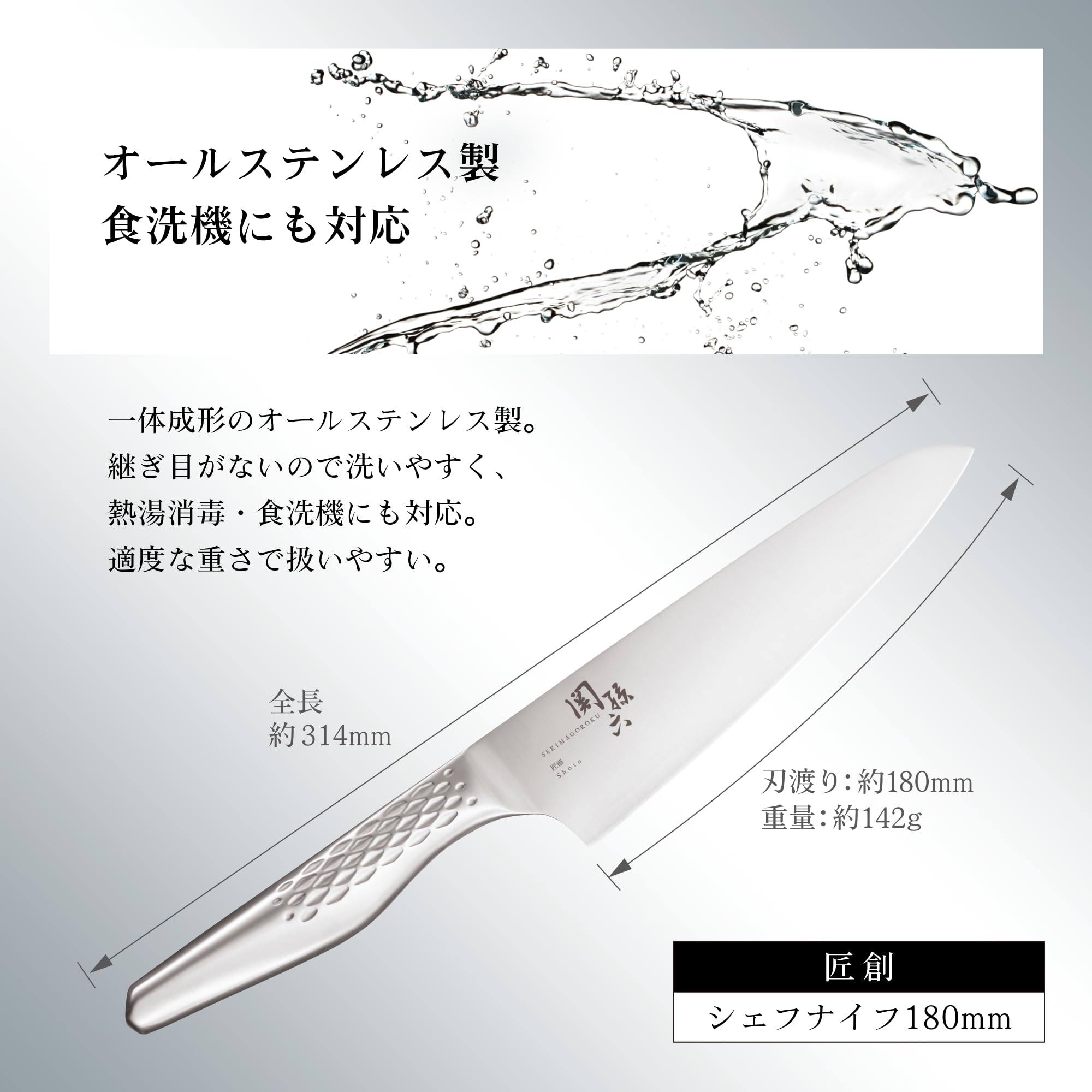 商品情報商品の説明清潔に扱えて爽快な鋭い切れ味 衛生的なステンレス製:一体成型で継ぎ目がない金属製なので堅牢性に優れている仕様。 洗いやすく衛生的。 三工程刃付け:刃付け後にできる角を滑らかに研磨。 食材の切断抵抗を小さくすることで 爽快な鋭い切れ味を実現。 指がかりが良く、グリップ感の高い流線型のハンドル デザインで操作性にも優れています。 (※意匠登録第1550965号) ステンレス単層材:サビにくくメンテナンスがしやすい。 材質 刃体:モリブデンバナジウムステンレス刃物鋼 柄:18-8ステンレススチール サイズ:約47×314×20mm 刃渡り:約180mm 重量:約142g 原産国:日本 右利き左利き兼用の包丁になります。左利きの方でもご使用いただけます 使用後は速やかに汚れや水分を取り除いて乾燥させ てください。 汚れや水分を残したまま放置するとサビや変色の原因になります。主な仕様 清潔に扱えて爽快な鋭い切れ味br衛生的なステンレス製:一体成型で継ぎ目がない金属製なので堅牢性に優れている仕様。 洗いやすく衛生的。br三工程刃付け:刃付け後にできる角を滑らかに研磨。 食材の切断抵抗を小さくすることで 爽快な鋭い切れ味を実現。br指がかりが良く、グリップ感の高い流線型のハンドル デザインで操作性にも優れています。 (※意匠登録第1550965号)brステンレス単層材:サビにくくメンテナンスがしやすい。br材質 刃体:モリブデンバナジウムステンレス刃物鋼 柄:18-8ステンレススチールbrサイズ:約47×314×20mm 刃渡り:約180mm 重量:約142gbr原産国:日本br右利き左利き兼用の包丁になります。左利きの方でもご使用いただけますbr使用後は速やかに汚れや水分を取り除いて乾燥させ てください。 汚れや水分を残したまま放置するとサビや変色の原因になります。