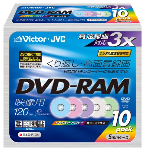 【送料無料】Victor 映像用DVD-RAM 3倍速 120分 4.7GB カラープリンタブル 5色 10枚 日本製 VD-M120NX10